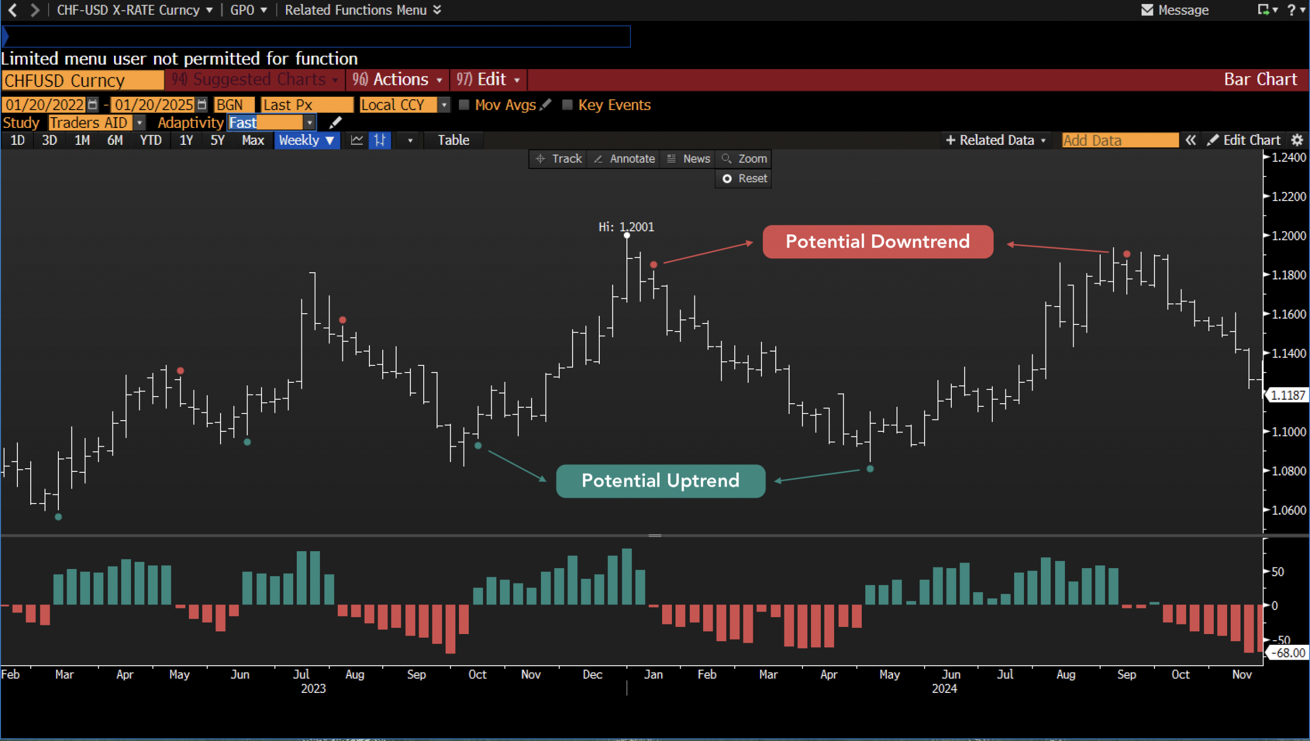 As a chart overlay, Traders AID integrates directly onto the Bloomberg Terminal’s environment, providing insights into potential trend shifts and market strength without disrupting the user’s workflow. By analyzing price history, momentum, and volatility, it helps professionals spot opportunities and risks across all asset classes with more confidence.